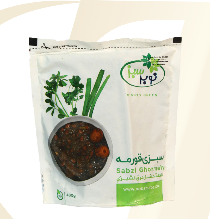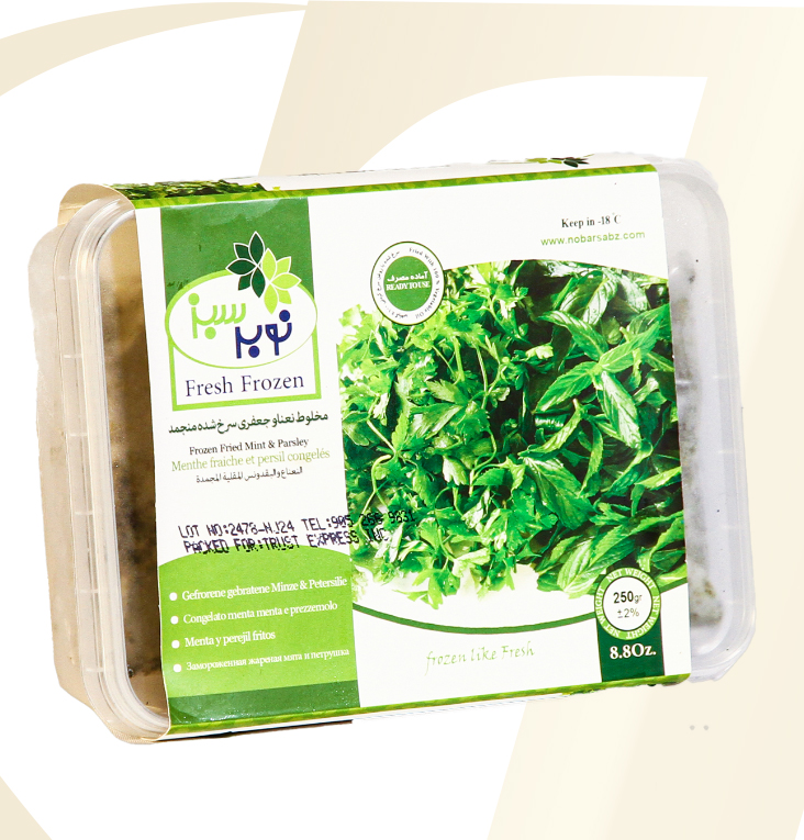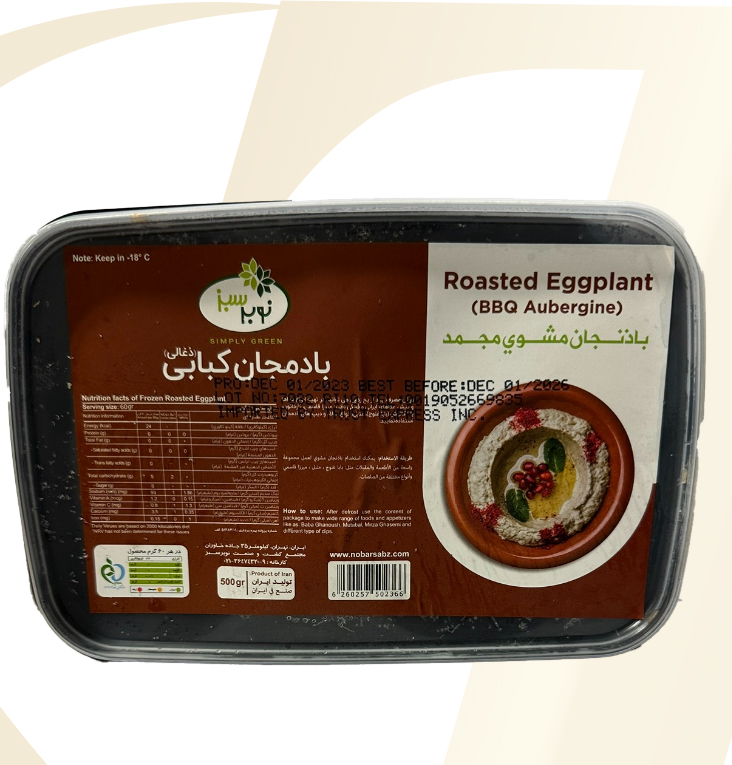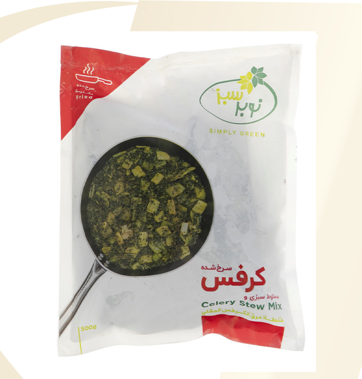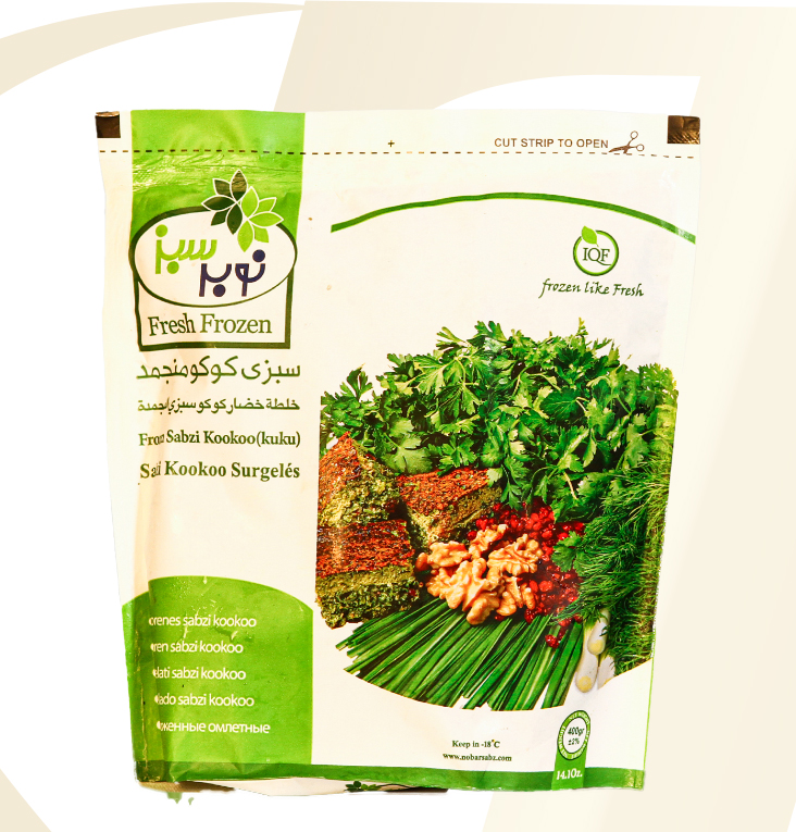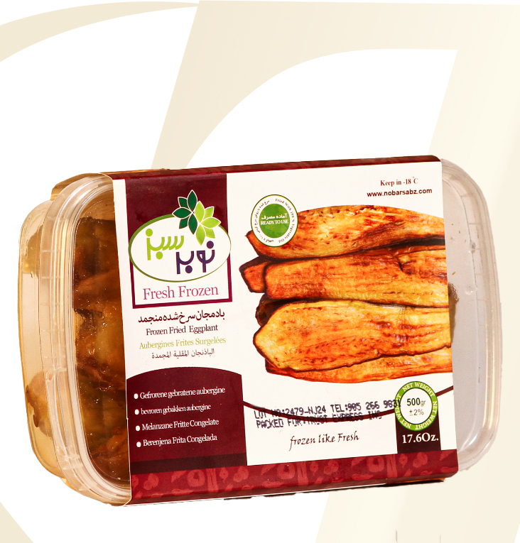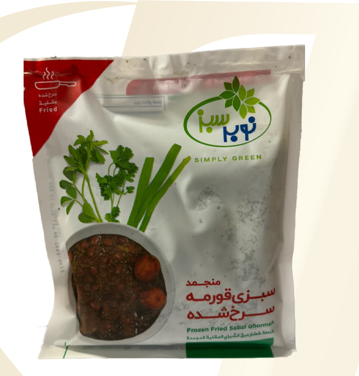 Frozen Vegetables What We Offer Frozen Vegetables Products Arvand Kernel Broad Beans 400 gr. Nobar Sabz IQF Ghormeh 400 gr. Nobar Sabz Dill Shevid 300 gr. Nobar Sabz Fried Mint and Parsley 250 gr. Nobar Sabz Fried Onion 150 gr. Nobar Sabz Fried Eggplant 500 gr. Nobar Sabz Fried Eggplant 2.5 kg. Nobar Sabz Sour Grape 300 gr. Nobar Sabz Fried Celery Stew mix 500 gr. Nobar Sabz BBQ Eggplant 500 gr. Nobar Sabz Faloodeh Plain 500 gr. Nobar Sabz Faloodeh Sour Cherry 500 gr. Nobar Sabz Faloodeh Saffron 500 gr. Nobar Sabz Fried Ghormeh 400 gr. Nobar Sabz Green Beans 2.5 kg Nobar Sabz Green Beans 400 gr. Nobar Sabz Omlet Herbes KUKU 400 gr. Nobar Sabz Fried Onion 8 Kg. Nobar Sabz Falafel 400 gr.
